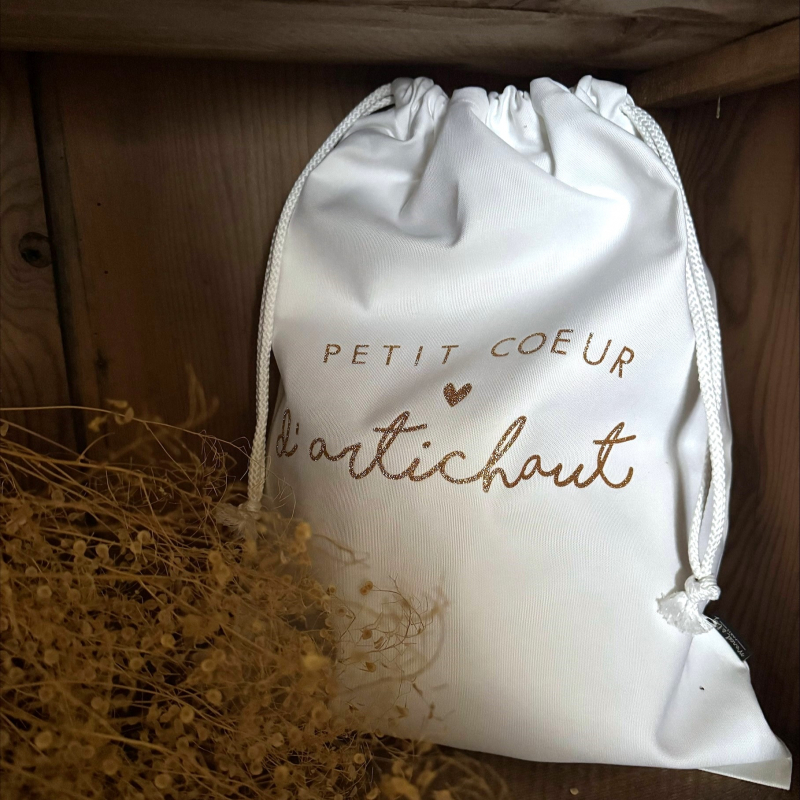 Adorable sac baluchon pour votre petit coeur d'artichaut. A accrocher dans sa chambre, pour y glisser ses petits joujoux, ses couches, pour ranger son pyjama, son petit linge ...