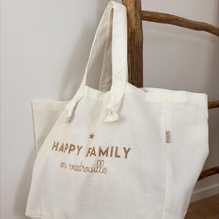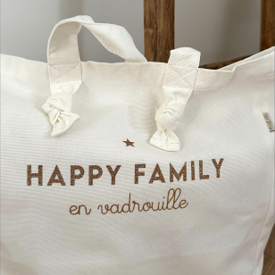 Grand sac cabas coloris Milk "Happy Family en Vadrouille" pour partir à l'aventure avec votre joyeuse tribu.