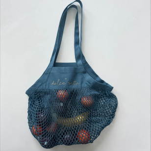 Sac filet à provisions en coton biologique couleur bleu avec son message pailleté or Dolce Vita hyper léger et super costaud avec son tissage dense. Le top pour aller au marché, à la plage ou en vadrouille avec style.