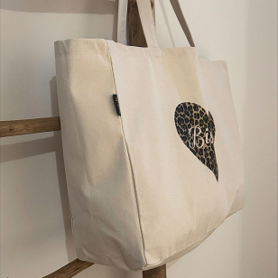 Maxi tote bag format XXL imprimé léopard BISOUS hyper costaud pour transporter tout votre joyeux bazar !