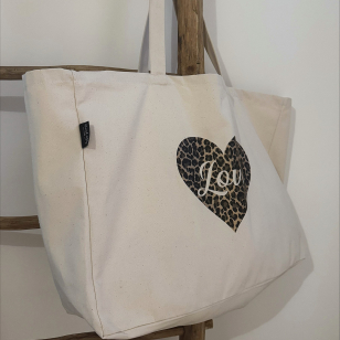 Maxi tote bag format XXL imprimé léopard LOVE hyper costaud pour transporter tout votre joyeux bazar !