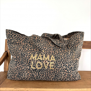 Craquez pour notre nouveau Maxi Cabas format XXL 100% coton imprimé léopard avec son message pailleté or MAMA LOVE.