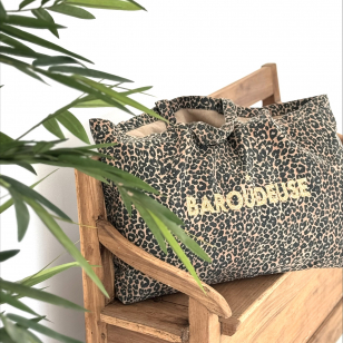 Craquez pour notre nouveau Maxi Cabas format XXL 100% coton imprimé léopard avec son message pailleté or BAROUDEUSE.