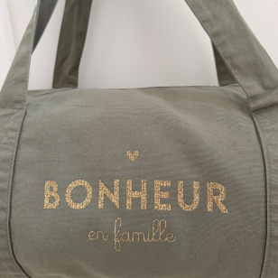 Imprimé pailleté or " Bonheur en Famille" pour partir à l'aventure avec style.