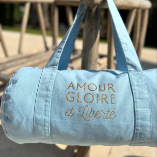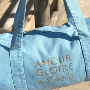 Imprimé pailleté or " Amour Gloire et Liberté " pour partir à l'aventure avec style.