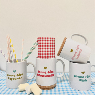 Mug Pop avec son couvercle en liège "Bonne Fête Papounet"