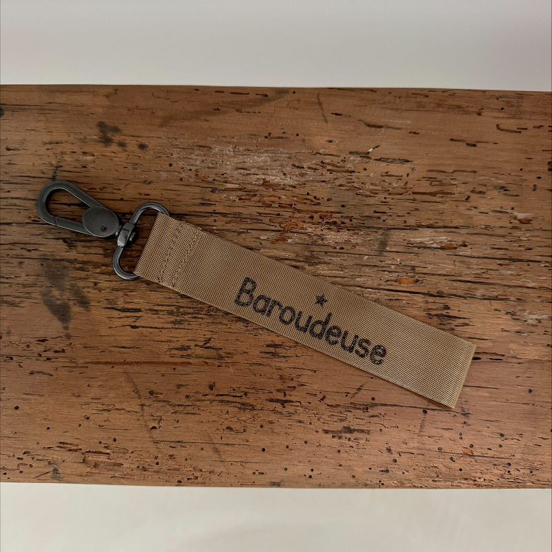 Nouveau Porte-clés BAROUDEUSE couleur bronze avec son grand mousqueton.