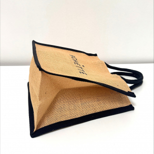 ♥ Toile en jute naturelle gansé avec un biais noir et son imprimé pailleté noir, un petit éclat tout en finesse.