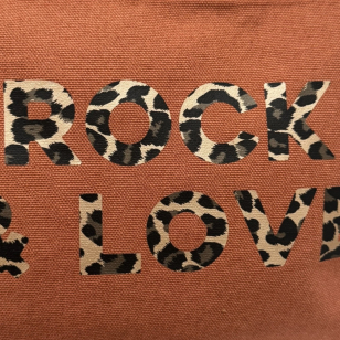 Craquez sur notre jolie grande pochette à fond plat couleur terracotta avec son imprimé léopard "Rock and Love"