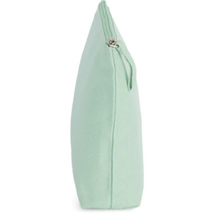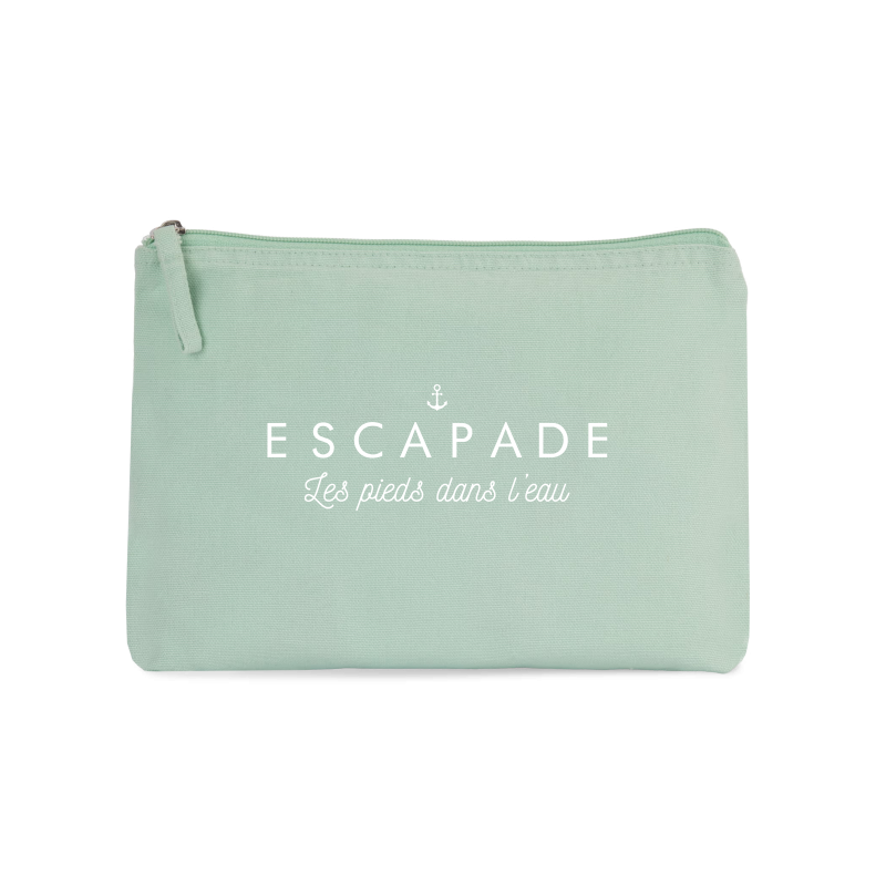 Craquez sur notre jolie grande pochette à fond plat couleur menthe avec son imprimé blanc velours "Escapade les pieds dans l'eau"