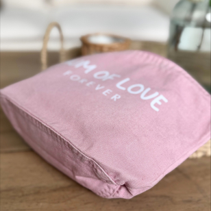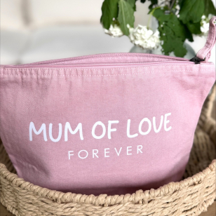 Nouvelle trousse à fond plat couleur rose avec son imprimé blanc velours "Mum of Love forever"