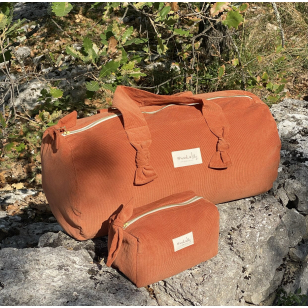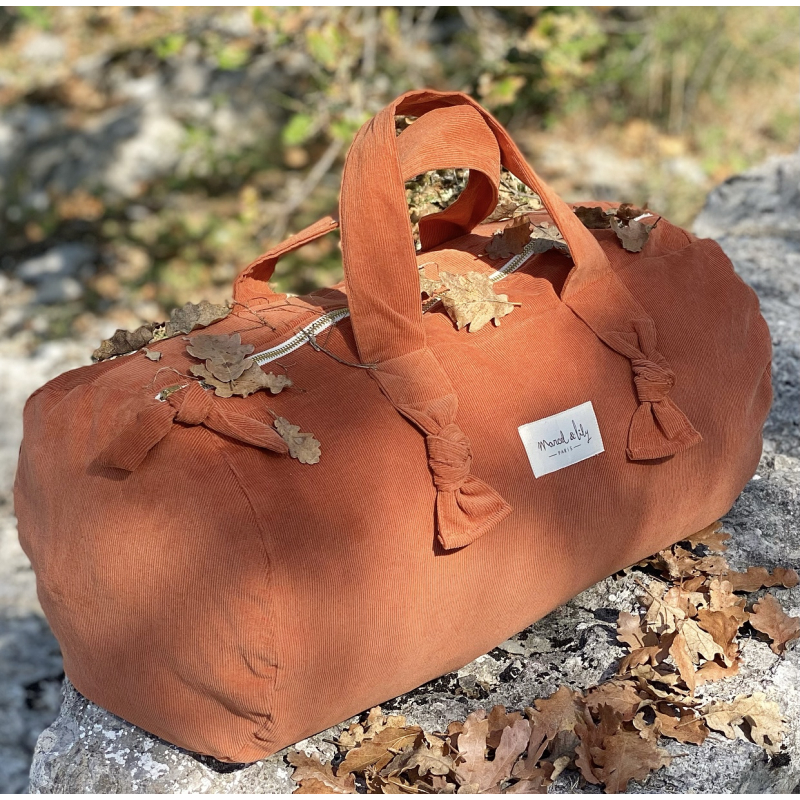 Notre incontournable sac polochon revient dans une nouvelle version en velours de coton milleraies et entièrement doublé coton.