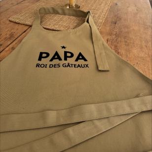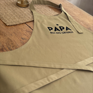 Craquez sur notre joli tablier couleur sable et son imprimé noir velours" Papa roi des gâteaux" tellement mignon.